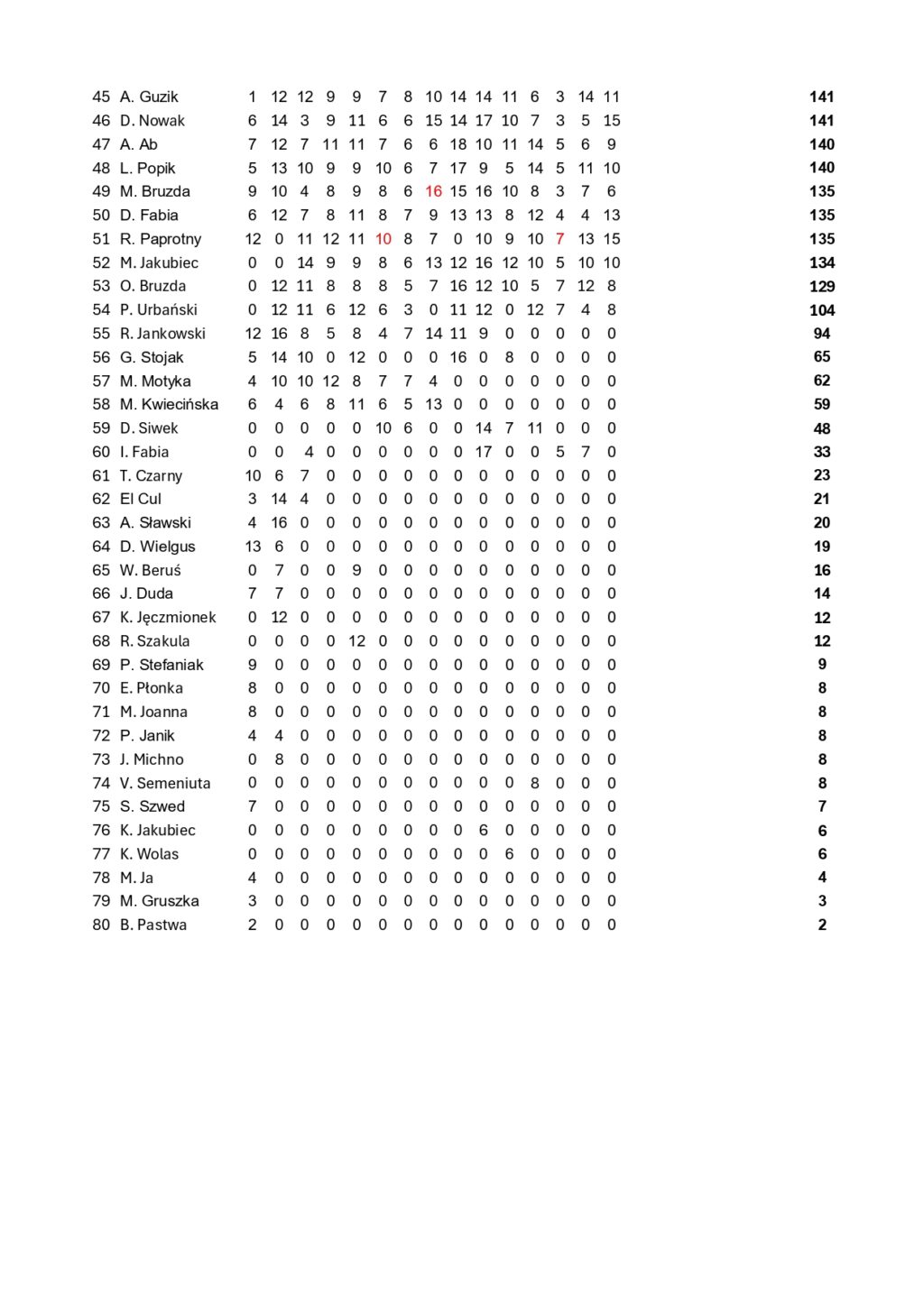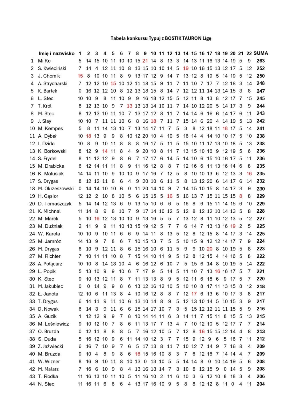 Tabele dotyczące danej kolejki będą ukazywać się systematycznie na stronie www.bkssa.pl. Każdy z uczestników będzie miał 24 godziny na sprawdzenie wyników i ewentualne zgłoszenie błędu.